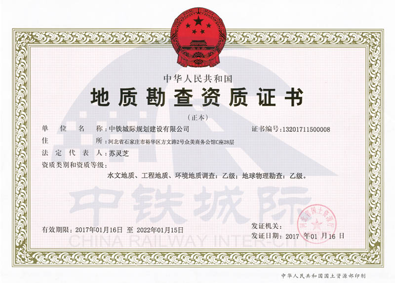 中鐵城際環(huán)境地質(zhì)業(yè)務(wù)已擁有地災(zāi)四甲資質(zhì)(地質(zhì)災(zāi)害評估、地質(zhì)災(zāi)害勘查、地質(zhì)災(zāi)害設(shè)計、地質(zhì)災(zāi)害施工甲級資質(zhì)),并且近年來在地質(zhì)災(zāi)害治理施工、設(shè)計、評估等項目中積累豐富經(jīng)驗,打造了一支專業(yè)的地質(zhì)災(zāi)害治理技術(shù)隊伍。