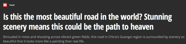 據悉,英國《鏡報》10月11日以《這是世界上最美的公路?迷人風景意味著這可能是天堂之路》為題,報道了廣西的這條合那高速公路。報道說,這景色看上去就像是在畫中,而非現實生活中所擁有的景象。