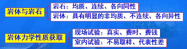 巖體的力學性質(zhì)可通過現(xiàn)場試驗和室內(nèi)試驗獲取,兩者各有其缺點,現(xiàn)場試驗真實,但費時、費錢,室內(nèi)試驗不已取樣且代表性差,工程中應(yīng)根據(jù)實際情況選擇是現(xiàn)場試驗還是室內(nèi)試驗。