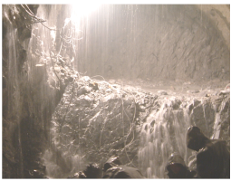 有時遇到填滿飽含水分的充填物溶槽,坑道掘進至邊緣時,充填物不斷涌入坑道,難以遏止,甚至地表開裂下沉,山體壓力劇增;有的溶洞、暗河迂回交錯、分支錯綜復雜、范圍寬廣,處理十分困難。