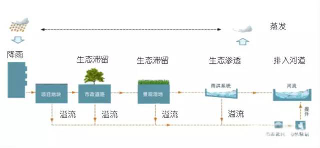 當雨峰值過大的時候,地面排水與地下雨水管渠相結合的方式來實現一般排放和超標雨水的排放,避免內澇等災害。經過雨水花園、生態滯留區、滲透池凈化之后蓄起來的雨水一部分用于綠化灌溉、日常生活,一部分經過滲透補給地下水,多余的部分就經市政管網排進河流。不僅降低了雨水峰值過高時出現積水的幾率,也減少了第一時間對水源的直接污染。