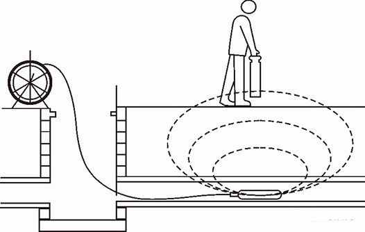 示蹤法解決了電磁感應(yīng)法不能探測非金屬管道的難題,信號強、探測精度高,可用來探測雨污水管道,但施工麻煩、效率低,應(yīng)用較少。