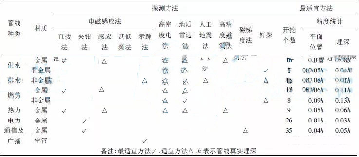1) 各種管線類型最適宜探測方法的精度均能達(dá)到規(guī)范。