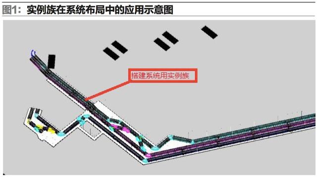 BIM技術軟件采用族模式管理,條理清晰,尤其參數族的應用使其模型建立、模型管理、系統模型搭建等事半功倍,一勞永逸。一旦系統所需固有族、參數族建立完成后,設計人員可在沒有局域網的數據系統下進行工作,提高了出差技術人員操作的便捷性。在自動化物流系統方案設計初期,可利用參數族所生成的實例族模型,進行整體系統布局信息化模型的快速搭建(如圖1),為后續工作埋下伏筆。并且,此信息化系統模型可進行三維渲染,給業主更為直觀的宣傳介紹,有助于提升中標幾率。