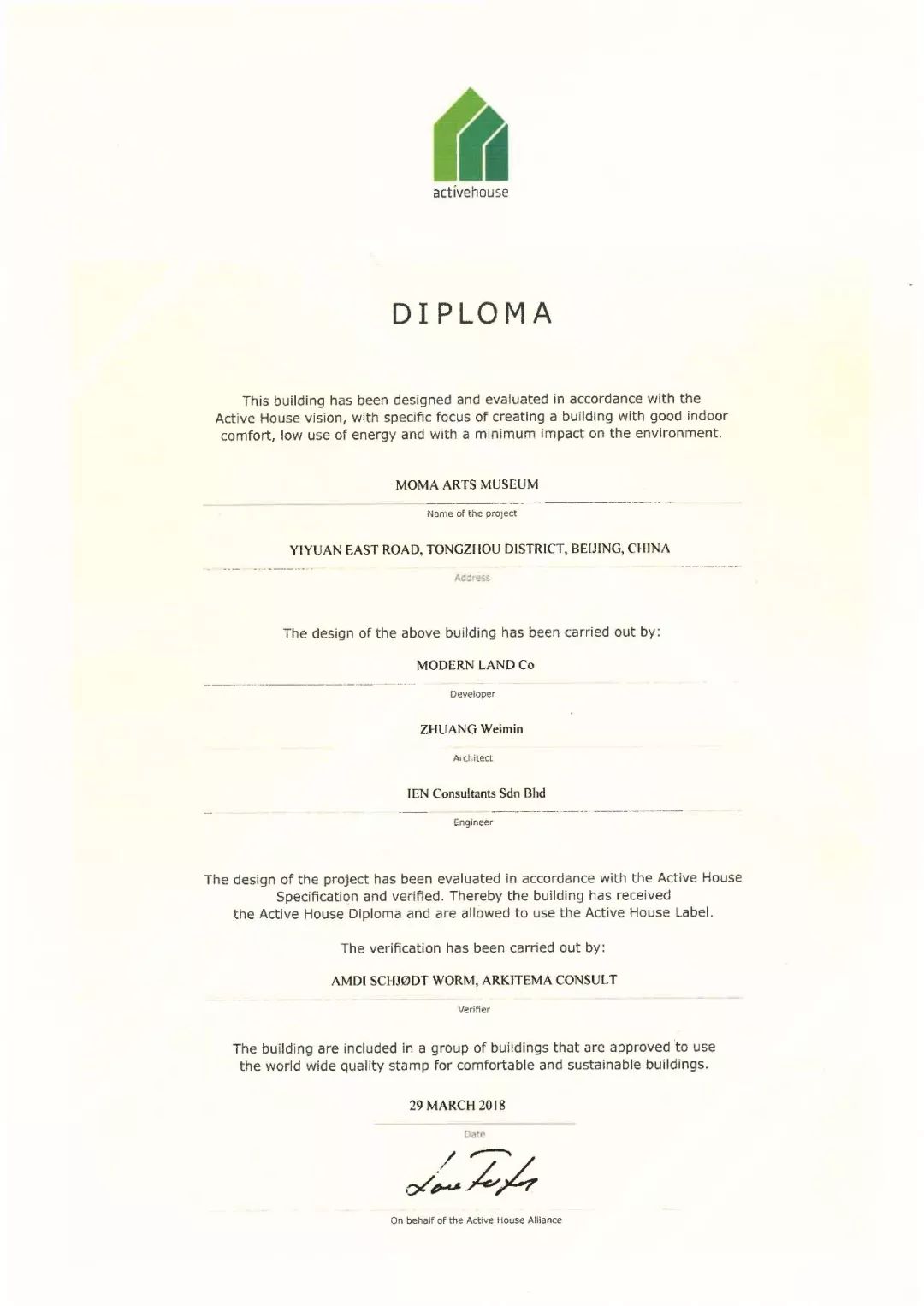 清華大學建筑設計研究院項目首次獲得主動式建筑ACTIVE HOUSE國際聯盟認證