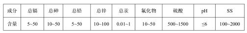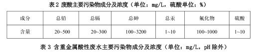 含重金屬酸性廢水主要產生于制酸凈化工段電除霧沖洗、沖渣、濕法收塵、濕法車間、地面沖洗、實驗室、有害渣庫滲濾等,主要污染物有重金屬離子、酸、懸浮物等。