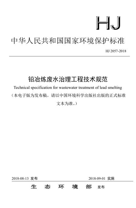 為貫徹《中華人民共和國環境保護法》、《中華人民共和國水污染防治法》等法律法規,防治環境污染,改善生態環境質量,規范鉛冶煉廢水治理工程的建設與運行管理,制定本標準。本標準規定了鉛冶煉廢水治理工程的設計、施工、驗收、運行和維護等技術要求。本標準為指導性標準。本標準為首次發布。