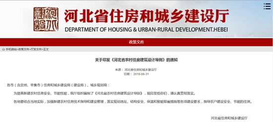 《河北省農(nóng)村住房建筑設(shè)計導(dǎo)則》近日出臺,農(nóng)村住房建設(shè)有了標(biāo)準(zhǔn)