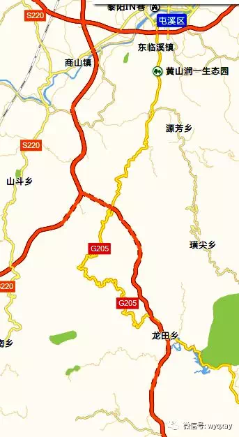 沿線主要控制點:五里亭、東臨溪、汊口、璜源、茶子嶺、浯田、南田、陳村、桃林村、G205皖浙交界處,全長53.3公里。