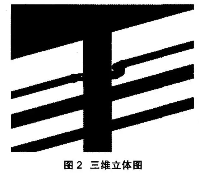 (3)進(jìn)行位置檢查,包括新繪制構(gòu)件與原有構(gòu)件、新構(gòu)件之間的碰撞檢測(cè),在平面和三維立體條件下轉(zhuǎn)換查看(見(jiàn)圖2)。
