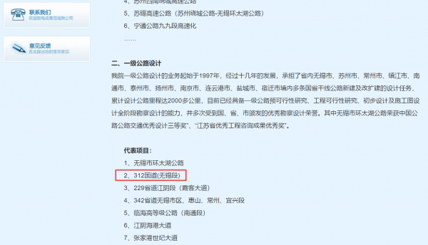 經濟觀察網記者注意到,另外一家上市公司中設股份(002883.SZ)的官網信息顯示,在該公司的一級公路設計代表項目中,312國道(無錫段)赫然在列。