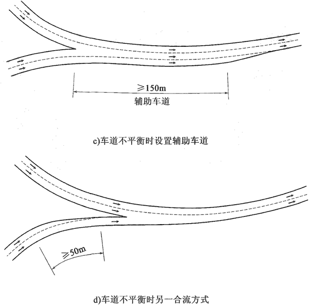 分合流車道平衡應(yīng)理解為交通量與車道數(shù)和通行能力的平衡,不是簡單車道個數(shù)的平衡。