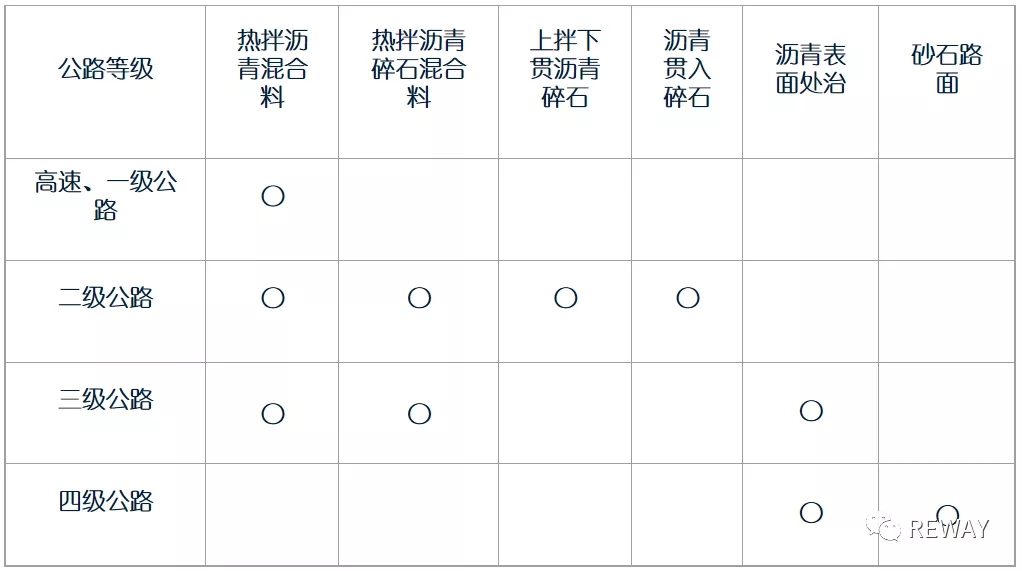(2)交通等級為D級及D級以上的公路,瀝青表面層可選用改性瀝青;E級交通的表面層、中面層可視實(shí)際情況選用改性瀝青;