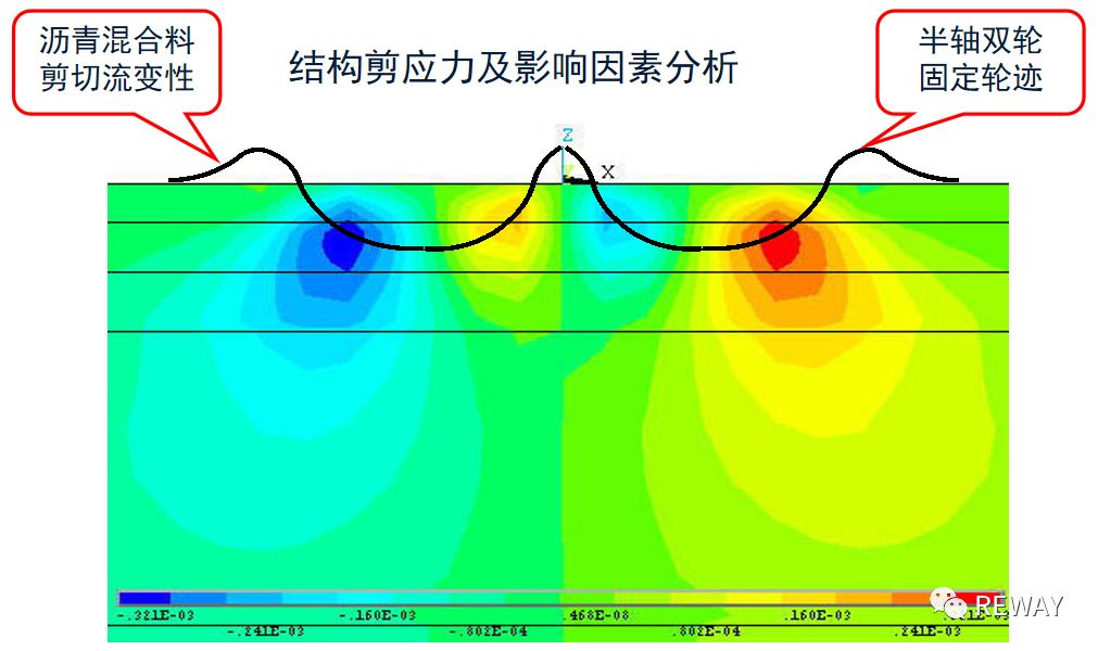 對于公路來講,不會象城市道路那樣出現(xiàn)過多制動與起車,因而水平荷載要小得多,考慮車輛行車荷載的滾動摩阻力。但對于山區(qū)高速公路或者縱坡較大、坡度超長路段應(yīng)考慮車輛荷載的水平分量所產(chǎn)生的路表剪應(yīng)力。目前瀝青路面抗剪強(qiáng)度設(shè)計(jì)指標(biāo)的研究尚不成熟,未列入本次規(guī)范修訂的內(nèi)容。