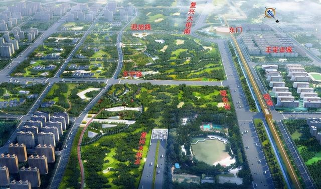 復(fù)興大街市政化改造工程,本次改造按照設(shè)計(jì)速度100公里/小時(shí)、雙向8車道城市快速路標(biāo)準(zhǔn)進(jìn)行設(shè)計(jì)建設(shè),標(biāo)準(zhǔn)路基寬度34.5米。全線新建大橋13座,總長4436米,其中滹沱河景觀特大橋2300米,泊水公園景觀大橋605米;新建地下隧道3座,總長5.02公里,其中正定古城段隧道2.51公里,白佛隧道1.23公里,學(xué)苑路隧道1.28公里;全線共設(shè)置互通立交11座(改造現(xiàn)有互通立交3座、新建互通立交4座、預(yù)留互通立交4座),增設(shè)出入口匝道16對(duì)(預(yù)留1對(duì))。同時(shí),結(jié)合區(qū)域交通需求,在滹沱河北大堤至月牙路段與和平路至南二環(huán)段局部增設(shè)輔路系統(tǒng),輔路總長約5.3公里,按照設(shè)計(jì)速度50公里/小時(shí)、雙向四車道的城市主干路標(biāo)準(zhǔn)建設(shè),兩側(cè)設(shè)置人非慢行系統(tǒng)。