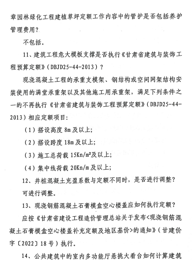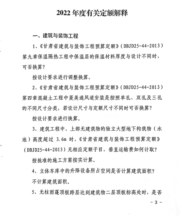 工程造價定額變動!甘肅住建廳出臺《2022年度有關定額解釋》