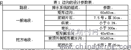 路基的地面排水主要是采取設(shè)置貫通全線的邊溝來(lái)進(jìn)行的,邊溝的設(shè)計(jì)參數(shù)如下表1所示。