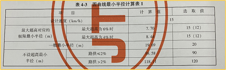 《標準》表4-3 圓曲線最小半徑計算表1該小交通量《規范》在總結各地農村公路建設經驗的基礎上,綜合考慮我國自然環境、交通特性、氣象氣候等條件,依據《小交通量農村公路工程技術標準》(JTG2111-2019),對小交通量農村公路設計提出具體、可操作性的要求。如:1.規定了分段選用不同技術等級類型的技術要求,細化了設計車輛、交通量、建筑限界等內容。