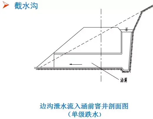 ③截水溝水流不應(yīng)引入邊溝,當(dāng)必須引入時(shí),應(yīng)增大邊溝橫斷面,并進(jìn)行保護(hù);
