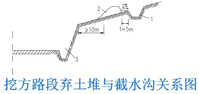2.截水溝:又稱(chēng)天溝,一般設(shè)置在挖方路基邊坡坡頂以外,或山坡路堤上方的適當(dāng)?shù)攸c(diǎn),用以攔截并排除路基上方流向路基的地面徑流。