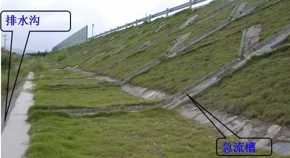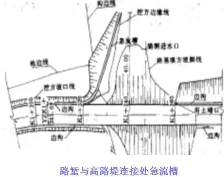 在路堤較高,邊坡坡面在未做防護(hù)而易遭受路面表面水流沖刷,或者坡面雖已采取防護(hù)措施但仍有可能受到?jīng)_刷時(shí),應(yīng)沿路肩外側(cè)邊緣設(shè)置攔水帶,匯集路面表面水,然后通過(guò)泄水口和急流槽排離路堤。