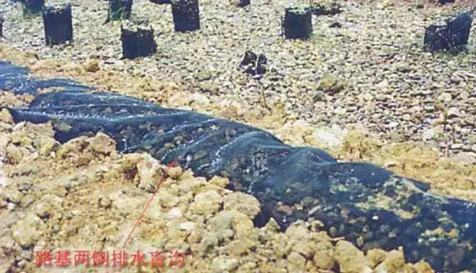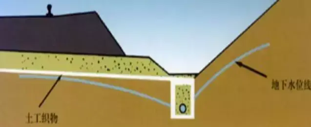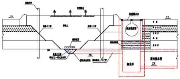 8.滲溝:利用滲透方式匯集流向路基的地下水,并通過(guò)溝底通道將水排至指定的地點(diǎn),起到降低地下水位或攔截地下水。