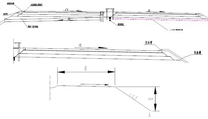 倒虹吸的設(shè)置往往是因路基橫跨原有溝渠,且溝渠水位高于路基設(shè)計(jì)標(biāo)高,不能按正常條件下設(shè)置涵洞,此時(shí)采用倒虹吸是可行的方案之一。 渡水槽的設(shè)置是因原水道與路基設(shè)計(jì)標(biāo)高相差較大,如果路基兩側(cè)地形有利,或當(dāng)?shù)卮_有必要,可設(shè)簡(jiǎn)易橋梁,架設(shè)水槽或管道,從路基上部跨越,以勾通路基兩側(cè)的水流。