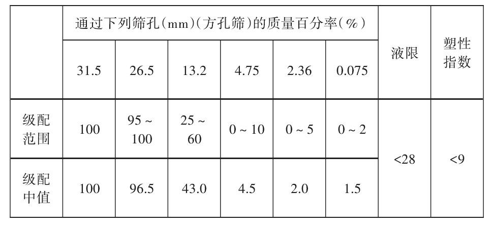 根據分析,材料的滲透系數應大于1500m/d,7d浸水無側限抗壓強度應不小于3.5~5MPa,這兩個指標可作為質量控制的關鍵,完成水泥穩定碎石混合料的設計。