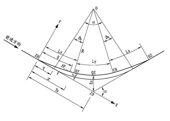 (三)設(shè)有緩和曲線的平曲線主點樁技術(shù)代號