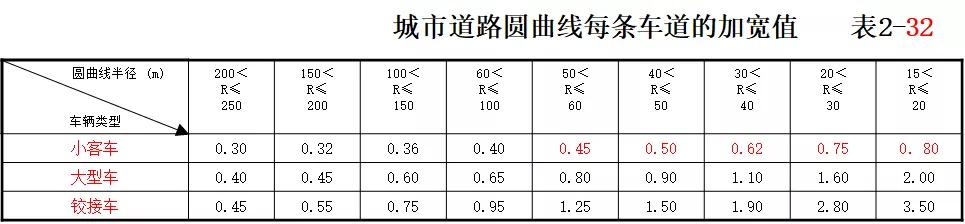 高速公路、一級公路、二級公路及設(shè)計速度為40km/h的三級公路應(yīng)采用第三類加寬值。
