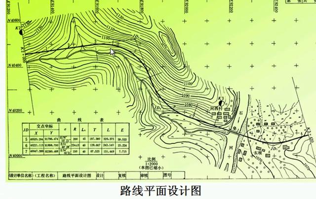 平面線形設(shè)計整體上盡可能順直,選擇曲線半徑盡可能大些,應(yīng)與自然地形等高線相適應(yīng)為宜。