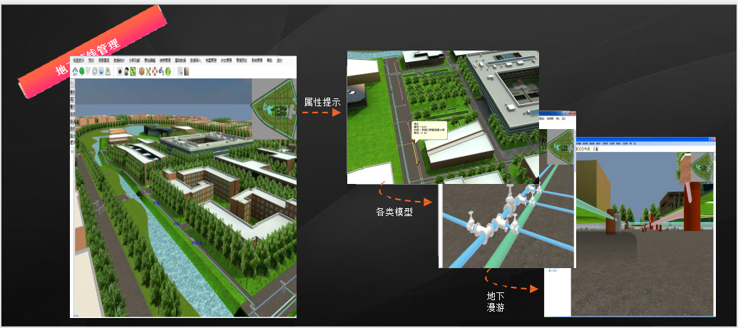 2.實時掌握各種管線的分布以及管理維護(hù)進(jìn)度,避免出現(xiàn)盲目開挖造成管線損失。改善管線維護(hù)效率,提高市行政中心南北院規(guī)劃管理水平,為市行政中心南北院突發(fā)事件提供輔助決策。