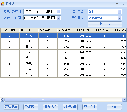 4.對各種管線的維護(hù)信息做到及時統(tǒng)計,使管理人員能及時掌握管線的運行情況,對管線進(jìn)行動態(tài)維護(hù)和管理。 實現(xiàn)各種管線管理維護(hù)的績效分析(質(zhì)量、效率、成本)。