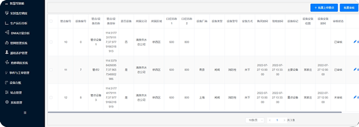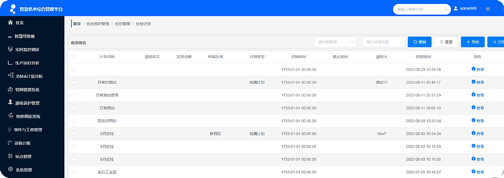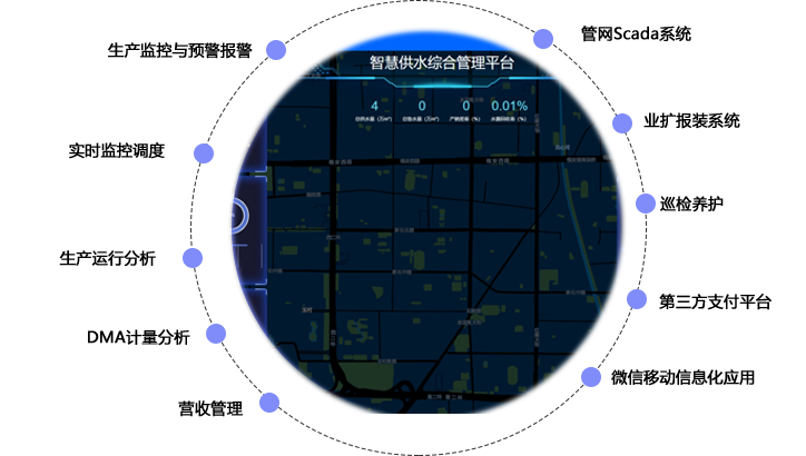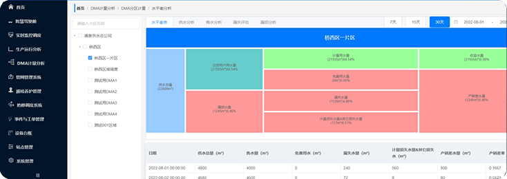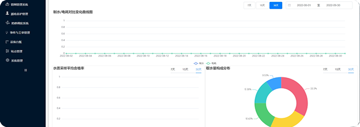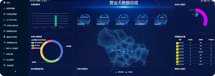 取水分析、消耗產(chǎn)出、水質(zhì)分析、水壓分析、運(yùn)營分析、設(shè)備統(tǒng)計