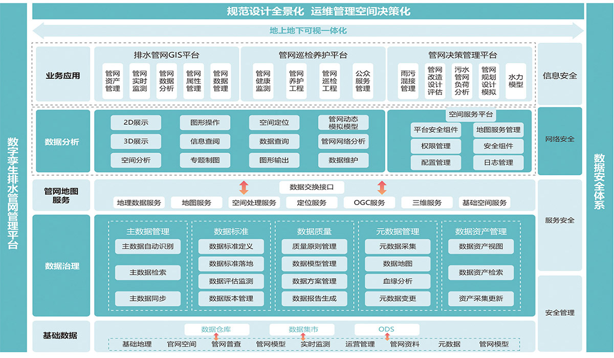 采用BIM+GIS、三維建模技術,建立城市排水基礎設施數(shù)字三維模型,立體疊加展示地上、地下的“廠-站-網-河”基礎設施。